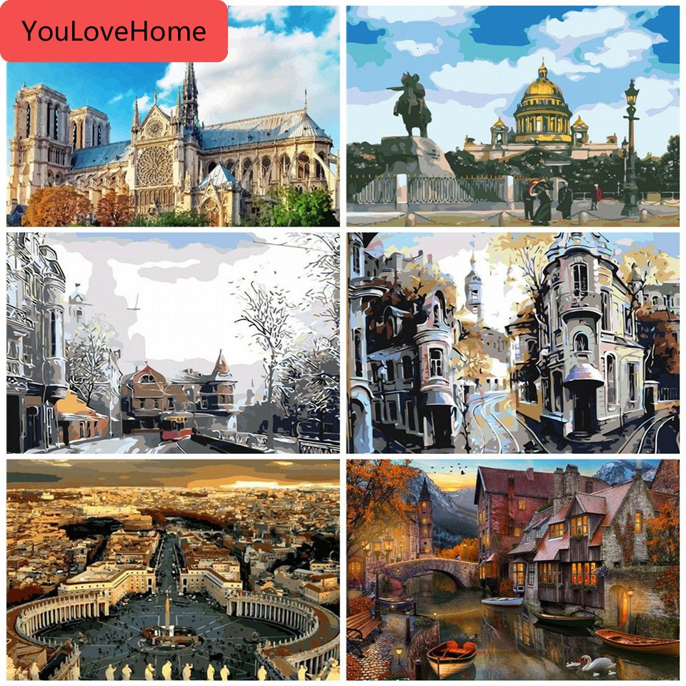 2020 Diy Paint By Numbers For Adults Landscape Acrylic Paint Unframe Coloring By Numbers On Canvas Street Home Decoration From Youlovehome 9 54 Dhgate Com